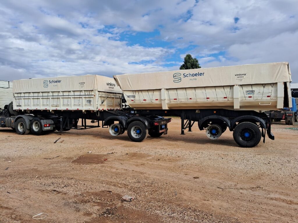 Bitrem Basculante Randon, ano/modelo 2018/2018, capacidade de 25m³ dianteira e 25m³ traseira, com 2 eixos + 2 erquedores de eixos, rodas a disco.