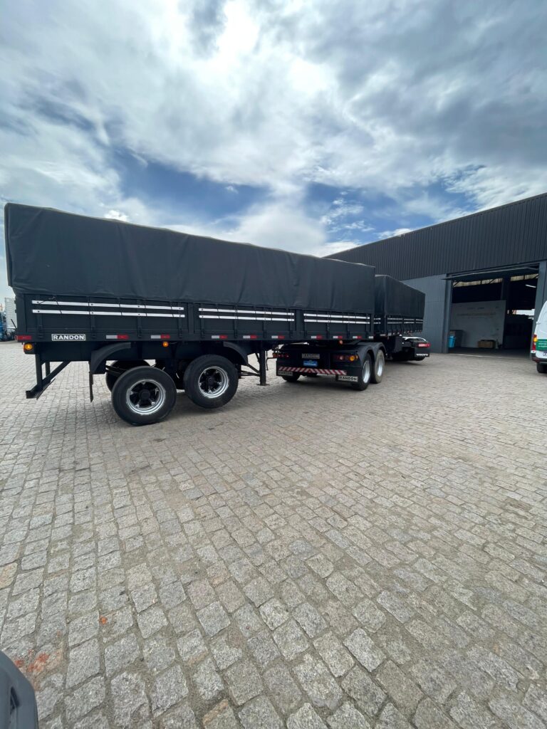 Bitrem graneleiro/bobineiro Randon, ano/modelo 2002/2002, ideal para transporte versátil de cargas a granel e bobinas. Possui comprimento de 7,10 + 7,10 m, berço para transporte de bobinas e assoalho em compensado naval resistente.